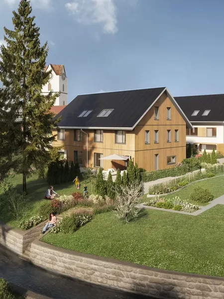 Im ländlich gelegenen Möchaltorf realisieren wir zwei Doppeleinfamilienhäuser, bei denen die Photovoltaikmodule direkt in die Dachkonstruktion integriert werden. Dadurch entsteht eine ästhetisch ansprechende Lösung, die sich nahtlos in das Gesamtbild der Gebäude einfügt.
